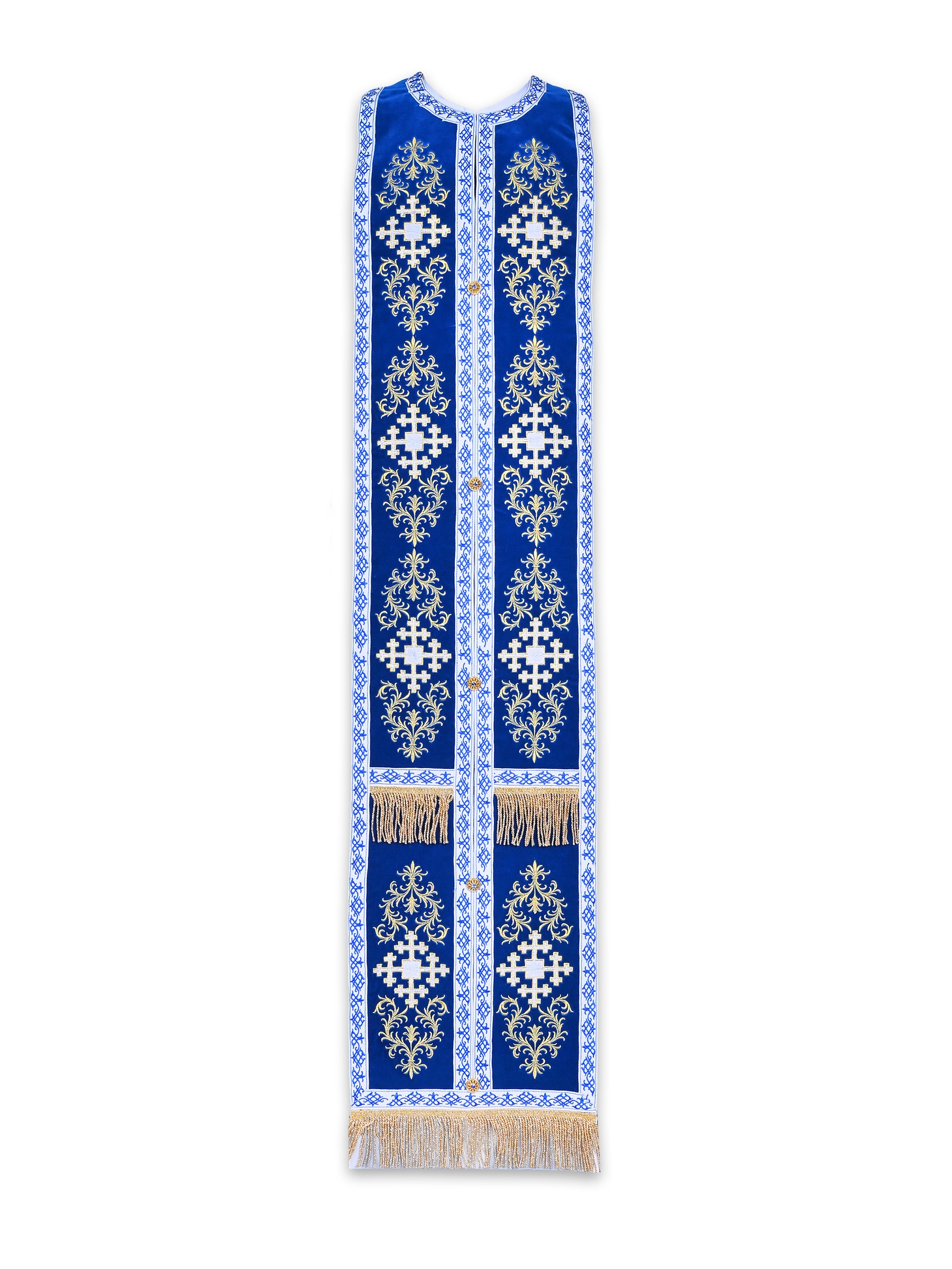 Veșmântul poate fi personalizat la cerere, atât în ceea ce privește icoana sau crucea de pe spate, cât și dimensiunile sau alte detalii decorative.
